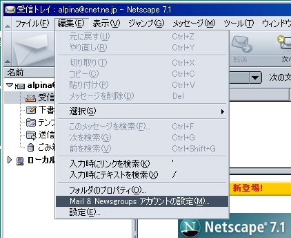 1.Netscape Mail & Newsgroupsを開きます。
