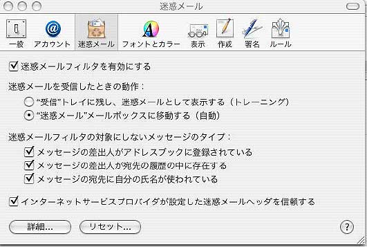『迷惑メールフィルタの対象にしないメッセージのタイプ』の項目はご利用に合わせて設定して下さい。
