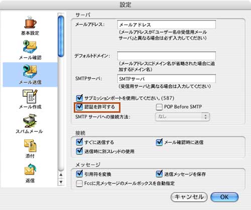 ※古いEudoraはSMTP認証に非対応のため使用できません。